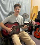 Rhys is a guitar teacher who loves to teach music to students of all ages. He has been playing the guitar for over many years and continues to perform his band. Rhys takes great pride in his teaching methods, which focus on both theoretical knowledge and practical application. He believes that understanding the fundamentals of music theory is crucial for any aspiring musician, but also emphasizes the importance of developing an overall ability to both play and explore aspects of composition.